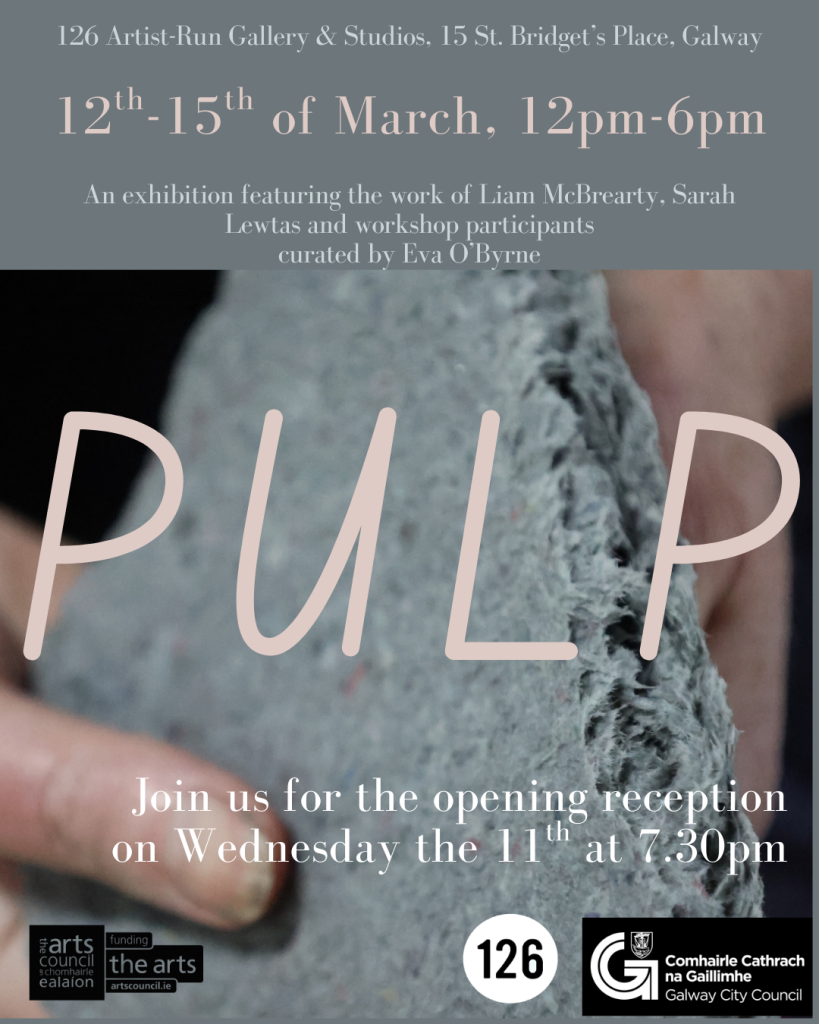 126 Artist-Run Gallery and Studios is delighted to present Pulp, a pop-up exhibition of work by our artists-in-residence Liam McBrearty and Sarah Lewtas, in collaboration with over 30 public participants. Pulp explores the power of people, words and the inherent worth of individual actions.